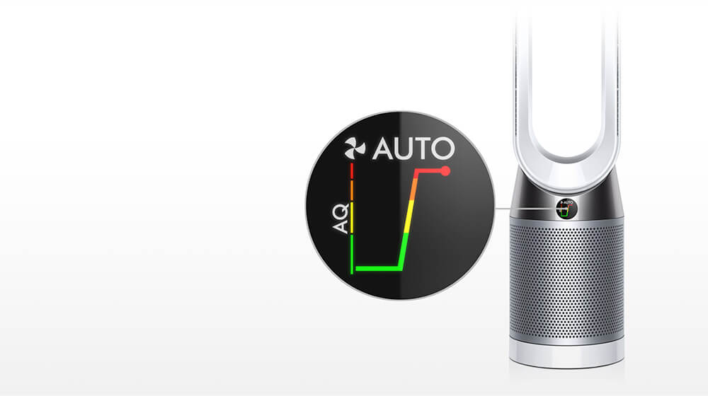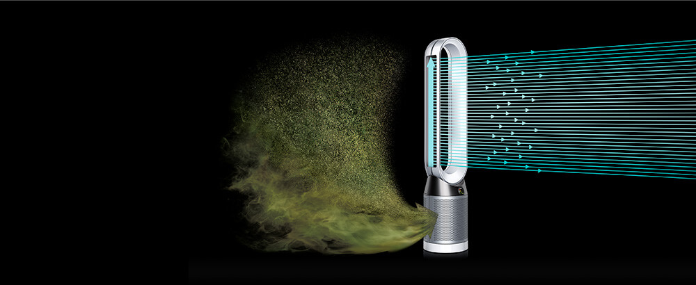 Diffúz módban, az egyedi Dyson légszeleppel a készülék a hátrafelé bocsátja ki a a levegőt, miközben a tisztítás hatékonysága változatlan.