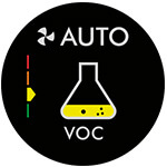 A beépített kijelző mutatja az adott pillanatban a szoba levegőjében lévő káros gázok és részecskék szintjét.